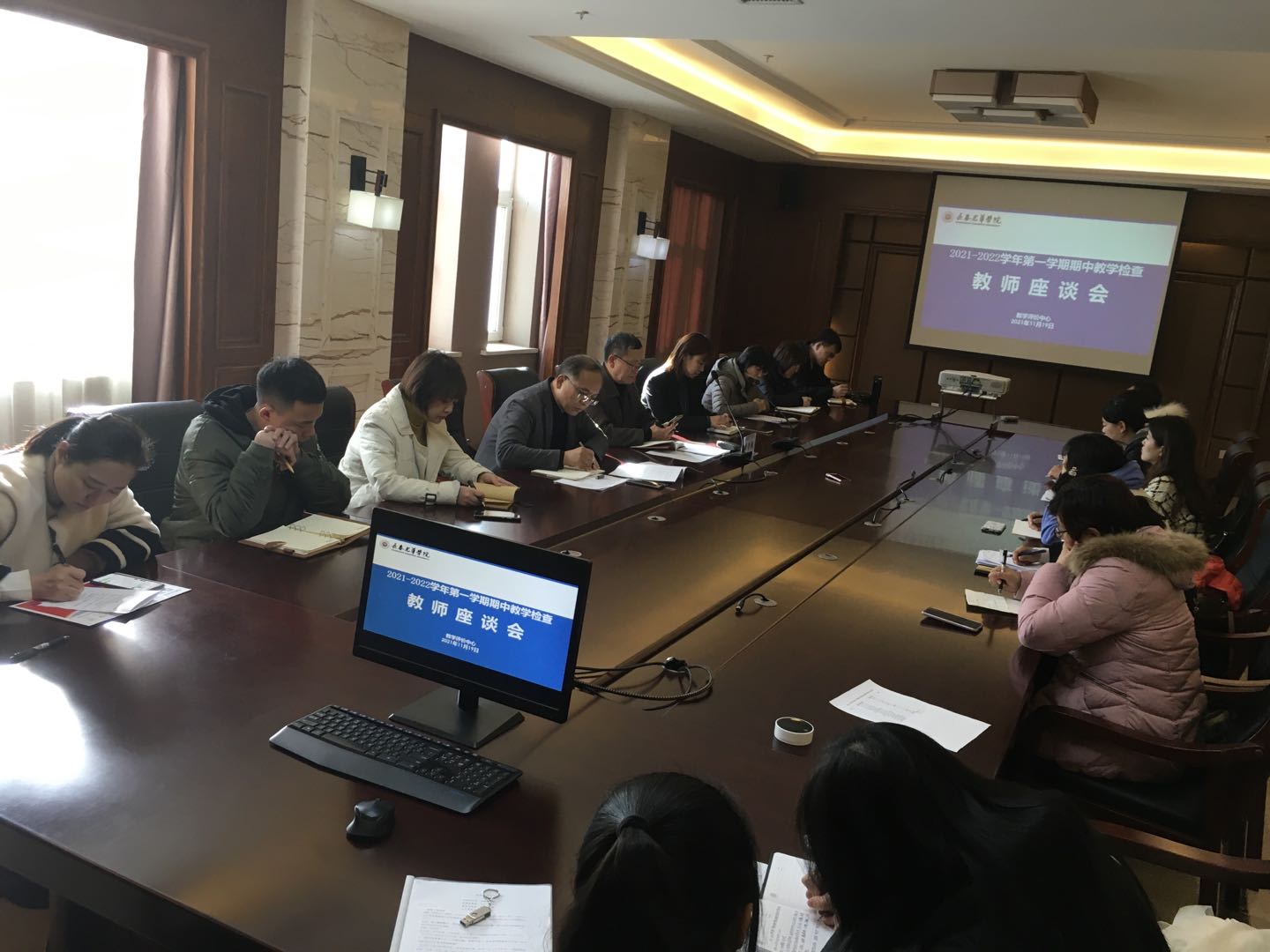 教评新闻2021年11月19日中午12时,在行政楼第二会议室召开了本学期教师座谈会。本次会议由教学评价中心组织,副校长栾学钢、教学评价中心主任刘刚、教务处副处长刘柳、评价中心质量科岳清源及14个教学单位教师代表共18人参加。会议由刘刚主任主持。
