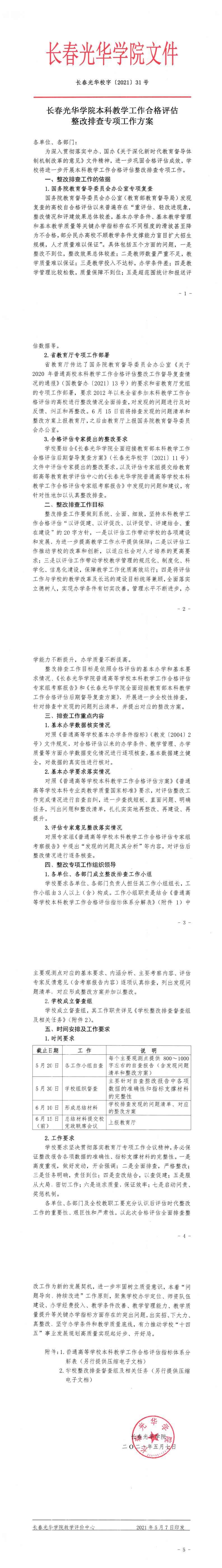 长春光华学院本科教学工作合格评估整改排查专项工作方案