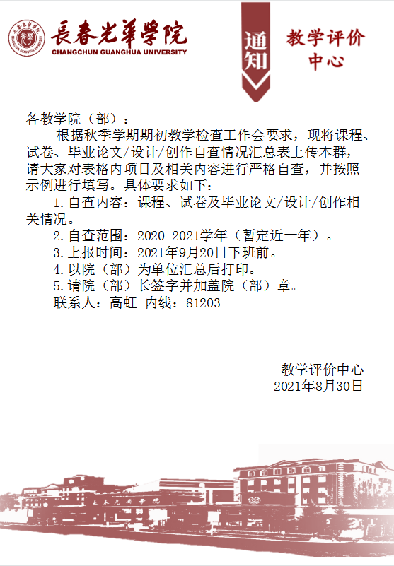 关于开展课程、试卷、毕业论文/设计/创作自查工作的通知
