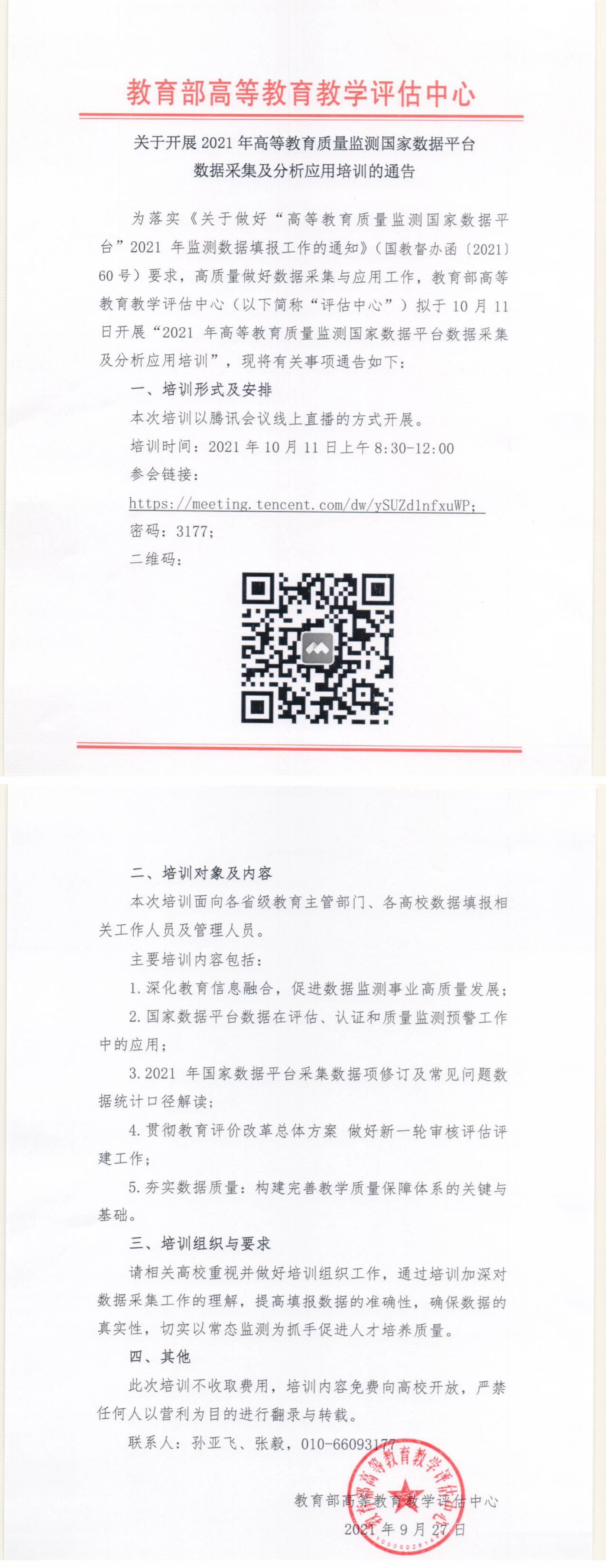 关于开展2021年高等教育质量监测国家数据平台数据采集及分析应用培训的通告