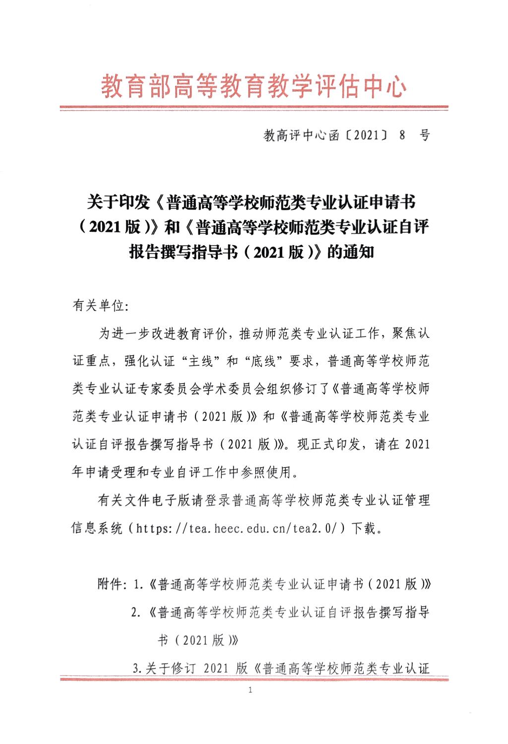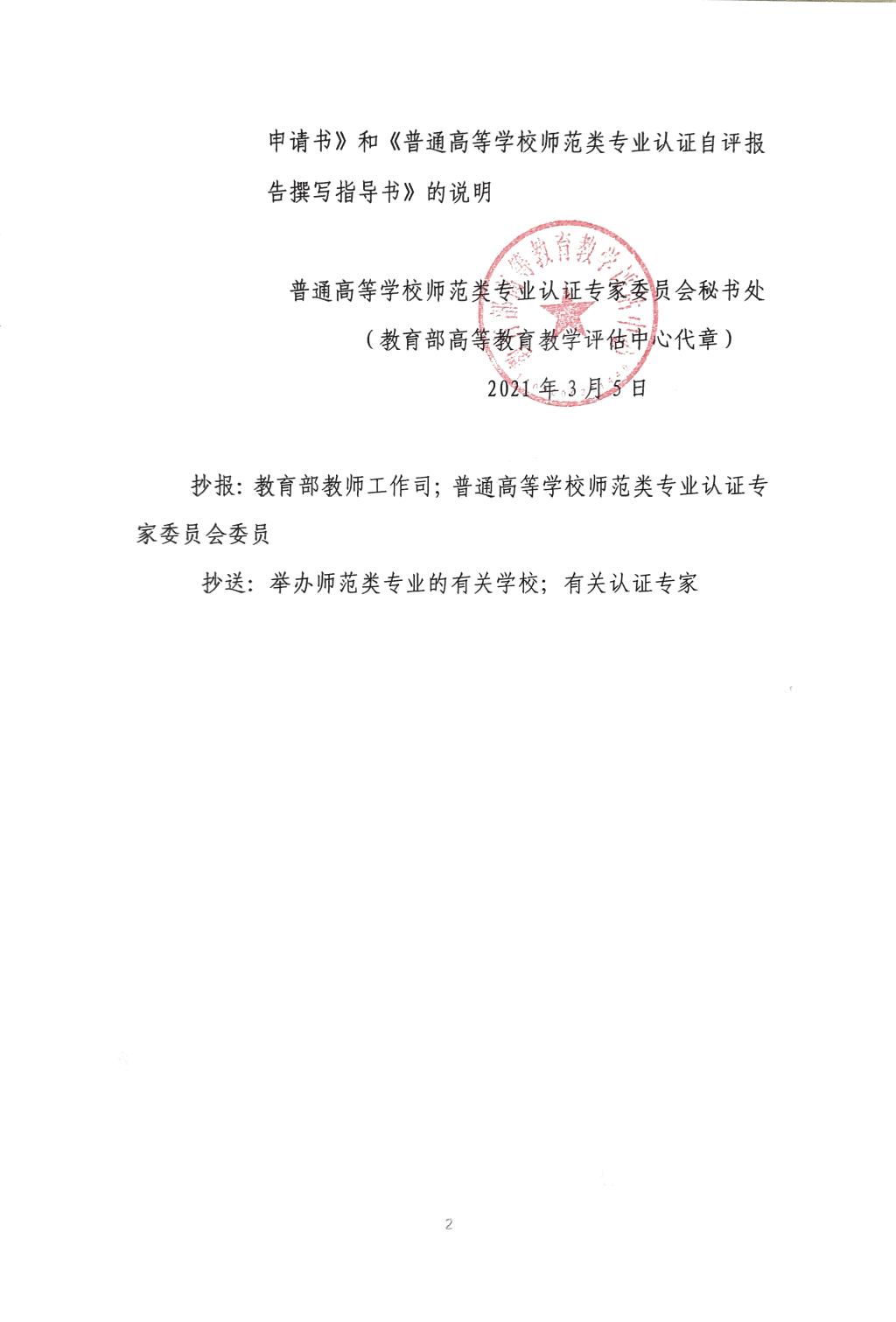 3. 关于修订2021版《普通高等学校师范类专业认证申请书》和《普通高等学校师范类专业认证自评报告撰写指导书》的说明件